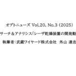 2025年10月2日 / 最終更新日 : 2025年10月2日 wired お知らせメディア掲載情報 オプトニューズ Vol.20(2025)にレーザー乾燥装置の開発動向が紹介されました 武蔵ワイヤードが取り組む、リチウムイオン電池(LiB)製造工程における革新的なレーザー乾燥技術の開発について紹介します。従来の熱風乾燥が抱える課題を解決するため、レーザーによる乾燥プロセスを実現。乾燥プロセスの可視化、温度フィードバック制御、電極評価など、次世代の製造技術に向けた挑戦をご覧ください。